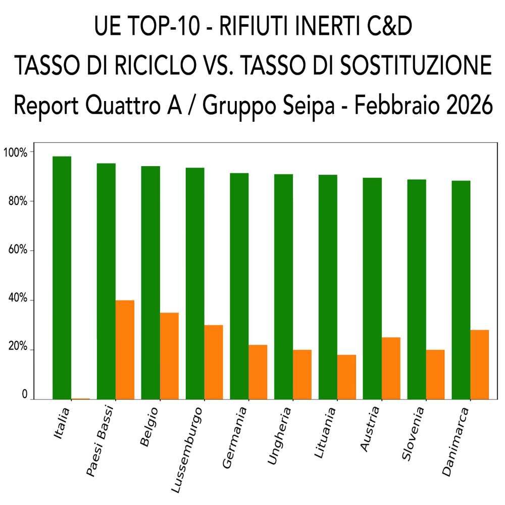 Roma, 20 febbraio 2026 – L’Europa recupera quasi tutto, ma riutilizza ancora troppo poco. È questo il messaggio centrale che emerge dal Report Febbraio 2026 diQuattro A, società del Gruppo Seipa attiva nei settori estrattivo, trasporto, recupero e riciclo dei materiali inerti e supporto alle opere infrastrutturali ed edili.
